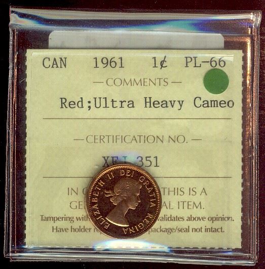 1961 1¢ ICCS PL66 Ultra Heavy Cameo.