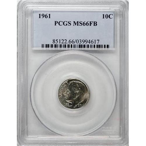 <B>1961 10C MS66 Full Bands PCGS.</B></I> . PCGS Population (29/3). NGC Census: (0/0). Mintage: 93,700,000. (#85122)<BR><BR><B>Coin Engraver:</B> John R. Sinnock<BR><BR><b>Shipping:</b> Coins & Currency (<a target="_blank" href="http://www.heritageauctions.com/common/shipping.php">view shipping information</a>)