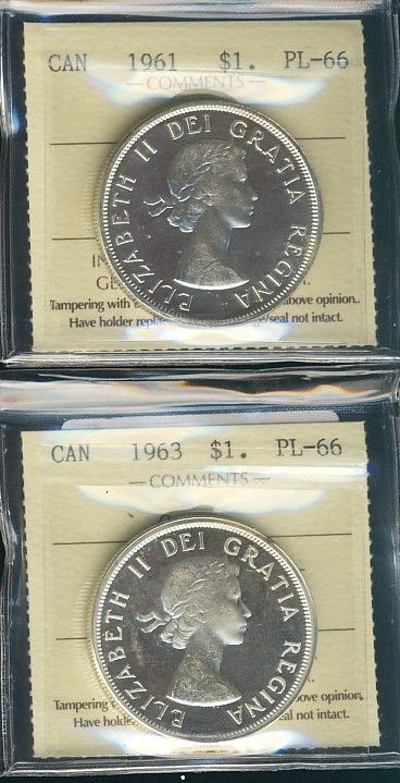 1961 & 1963 Cameo ICCS PL66. Lot of 2 coins. Only 63 designated Cameo.