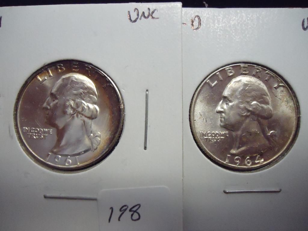 1961 & 1964-D WASHINGTON SILVER QUARTERS (UNC)