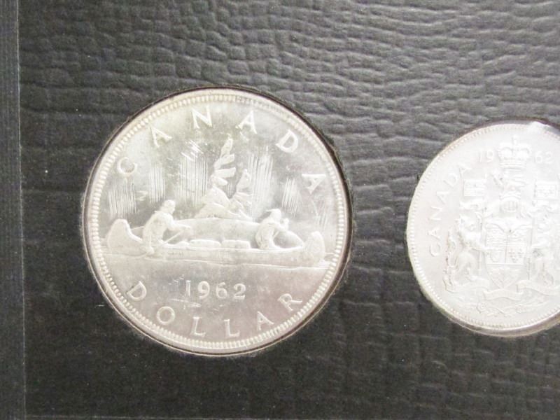 1961 & 1962 Canadian Coin Sets In Double Holder - 8 Silver Coins In Total