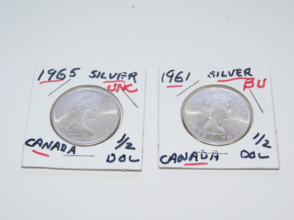 1961 & 1965 UNC Silver Canada Half Dollar Sold Times the Money 1961 & 1965 UNC-Times Bid Half Dollar