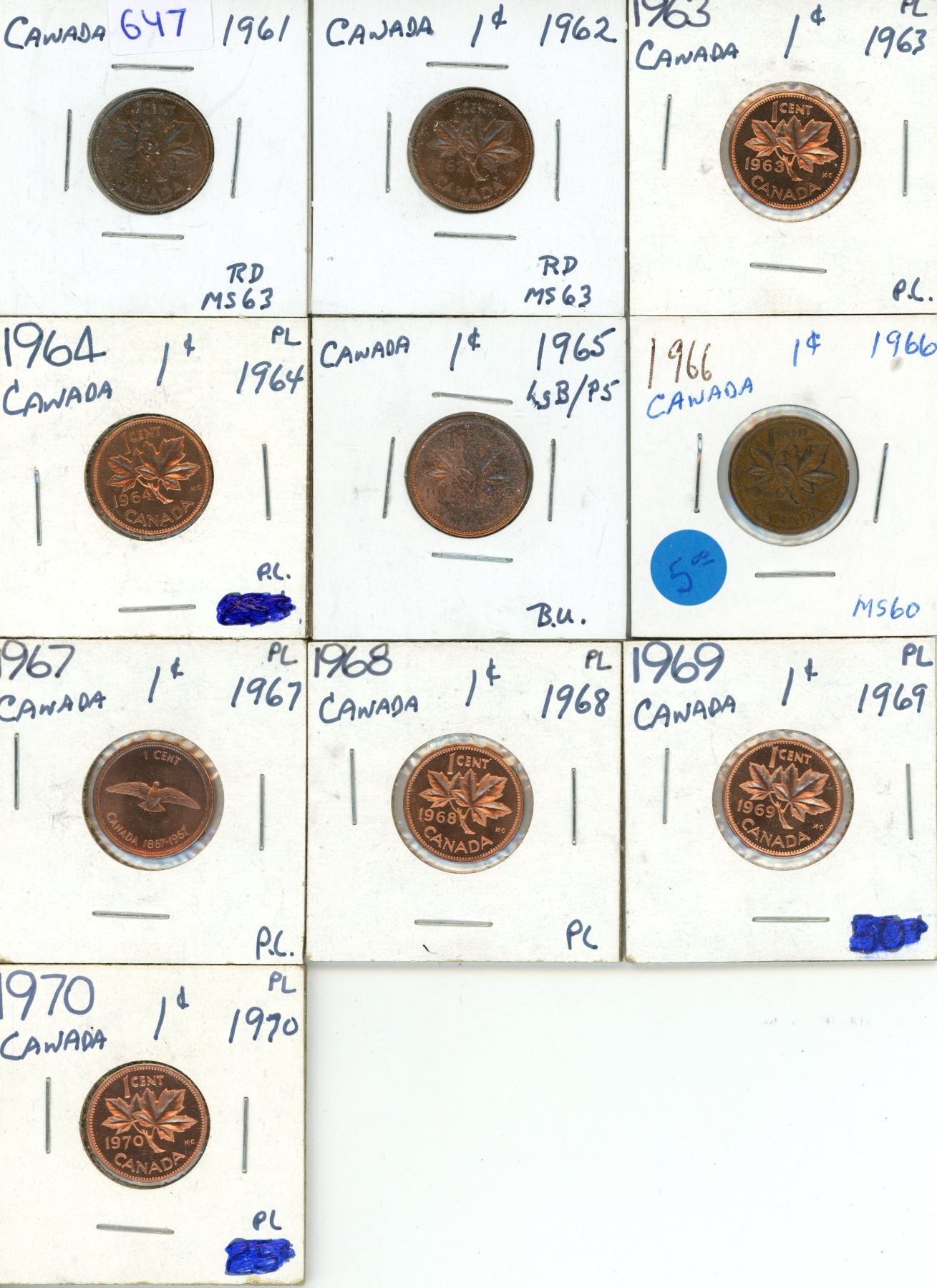1961-1970 Canadian One Cent Coin.