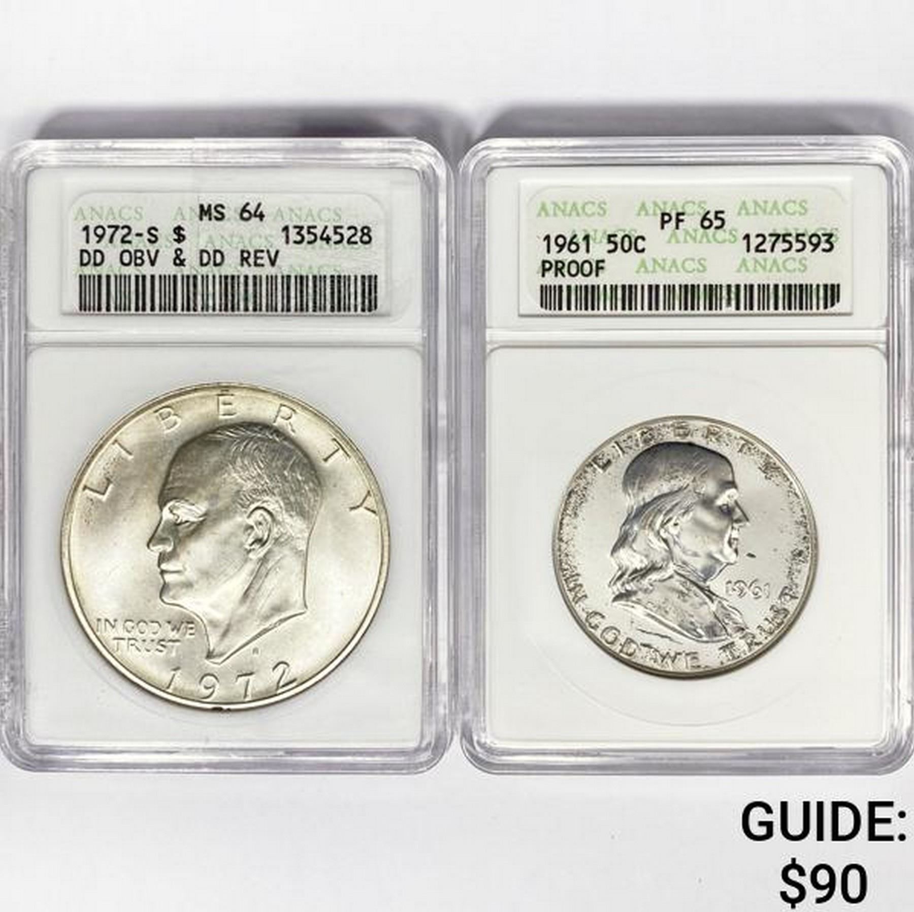 1961-1972 SET (2) 1 50C F, 1 $1 E ANACS