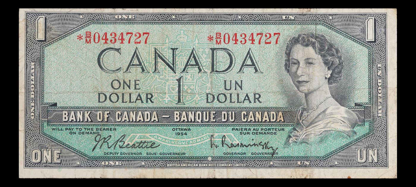 1961-1972 **Star Note** (1954 Issue) Canada 1 Dollar Banknote P# 75b, Sig. Beattie & Rasminsky Grade
