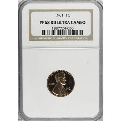 <B>1961 1C PR68 Red Deep Cameo NGC.</B></I> NGC Census: (76/61). PCGS Population (34/8). Numismedia Wsl. Price: $400. (#93395)<BR><BR><b>Shipping:</b> Coin/Currency (<a target="_blank" href="http://www.heritageauctions.com/common/shipping.php">view shipping information</a>)