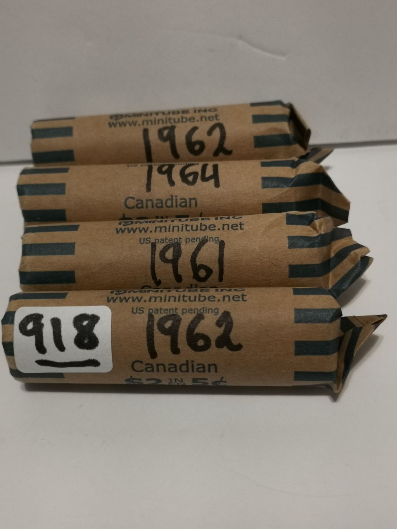1961, (2) 1962, 1964 full rolls of 5 cents