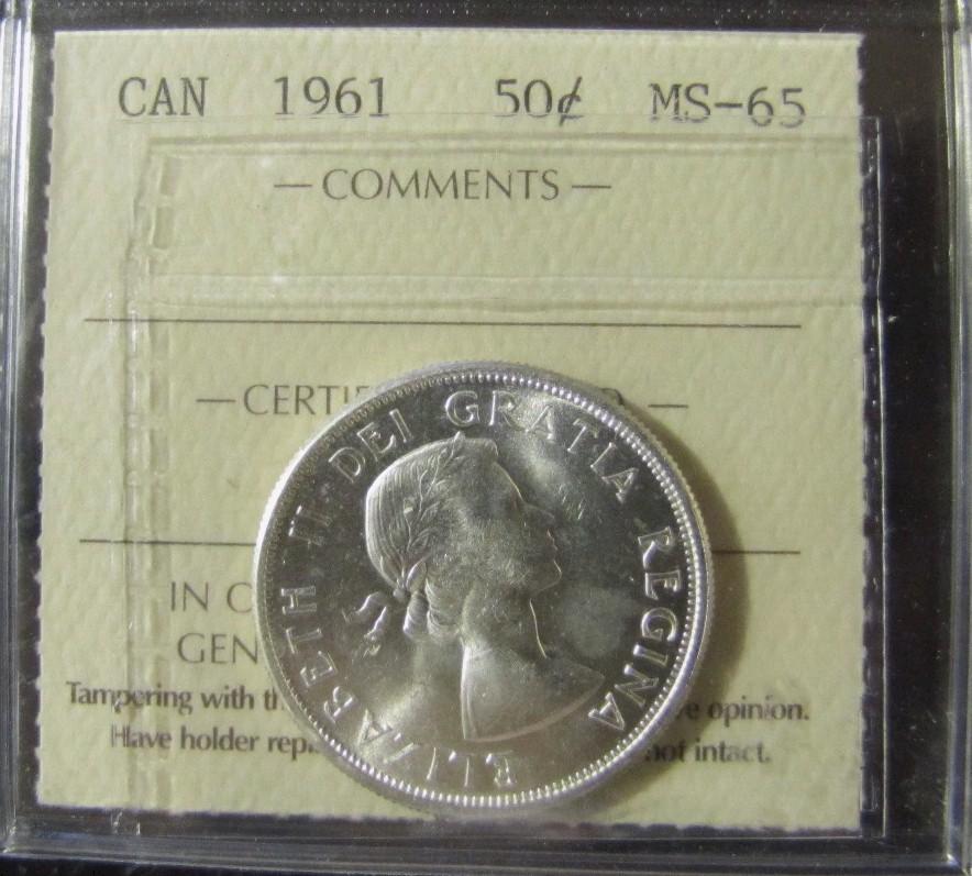 1961 50¢ ICCS MS65. Blast white and lustrous.