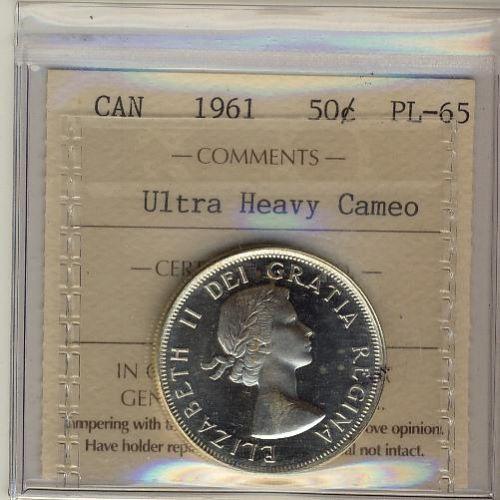 1961 50¢ ICCS PL-65 ULTRA HEAVY CAMEO.Brilliant with full luster and reflective surfaces
