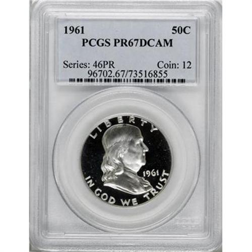 <B>1961 50C PR67 Deep Cameo PCGS.</B></I> PCGS Population (106/76). NGC Census: (99/66). Numismedia Wsl. Price for NGC/PCGS coin in PR67: $240. (#96702)<BR><BR><b>Shipping:</b> Coins & Currency (<a target="_blank" href="http://www.heritageauctions.com/common/shipping.php">view shipping information</a>)