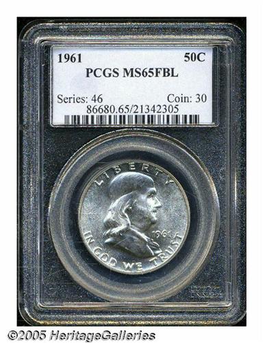 <B>1961<50C> MS65 Full Bell Lines PCGS.</B></I> Lustrous surfaces with virtually no color. Struck from highly polished dies, a few tiny marks are noted on Franklin's portrait and on the Bell.<BR><I>From The Southern Collection.</B></I>
