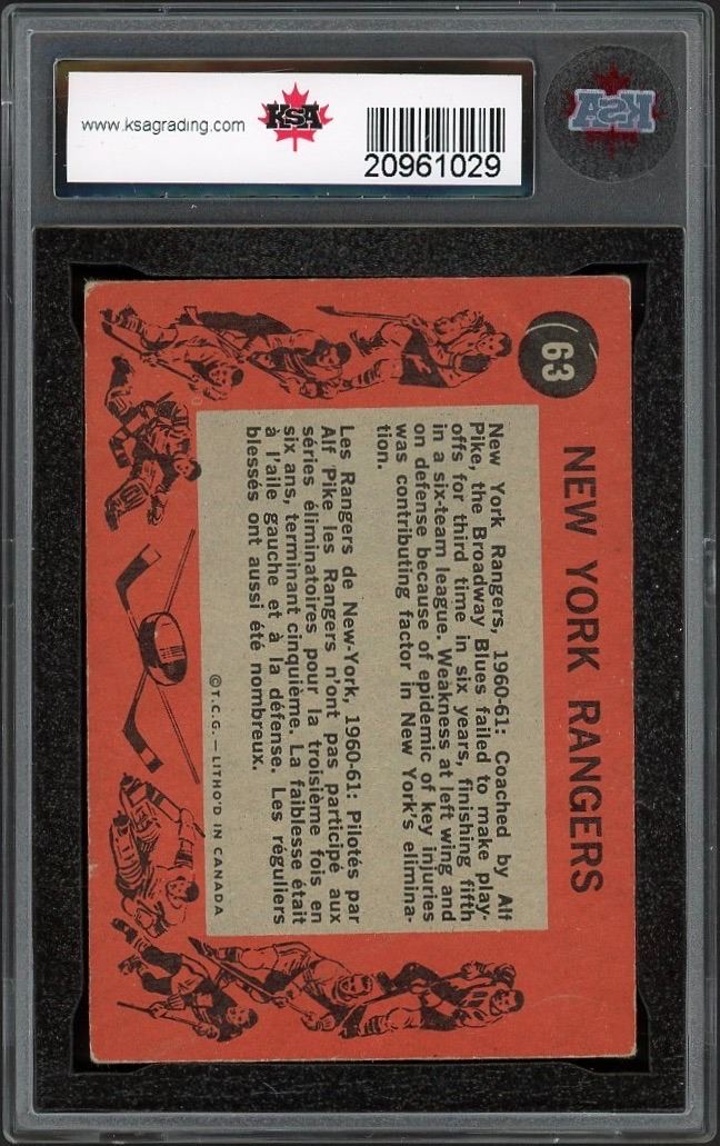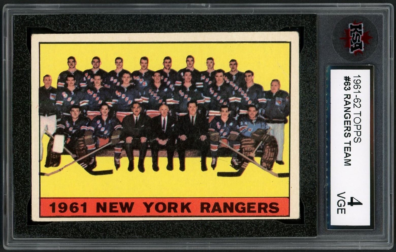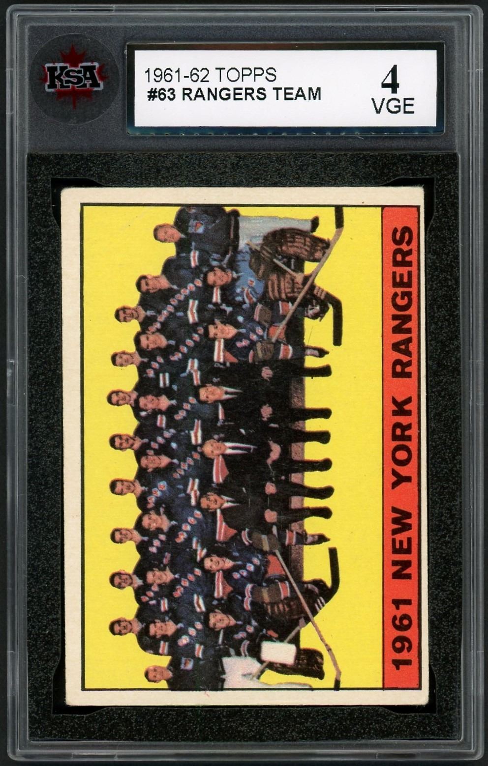 Mid-grade team card of the New York Rangers with several HOFers present! Graded 4 VG-EX by KSA.