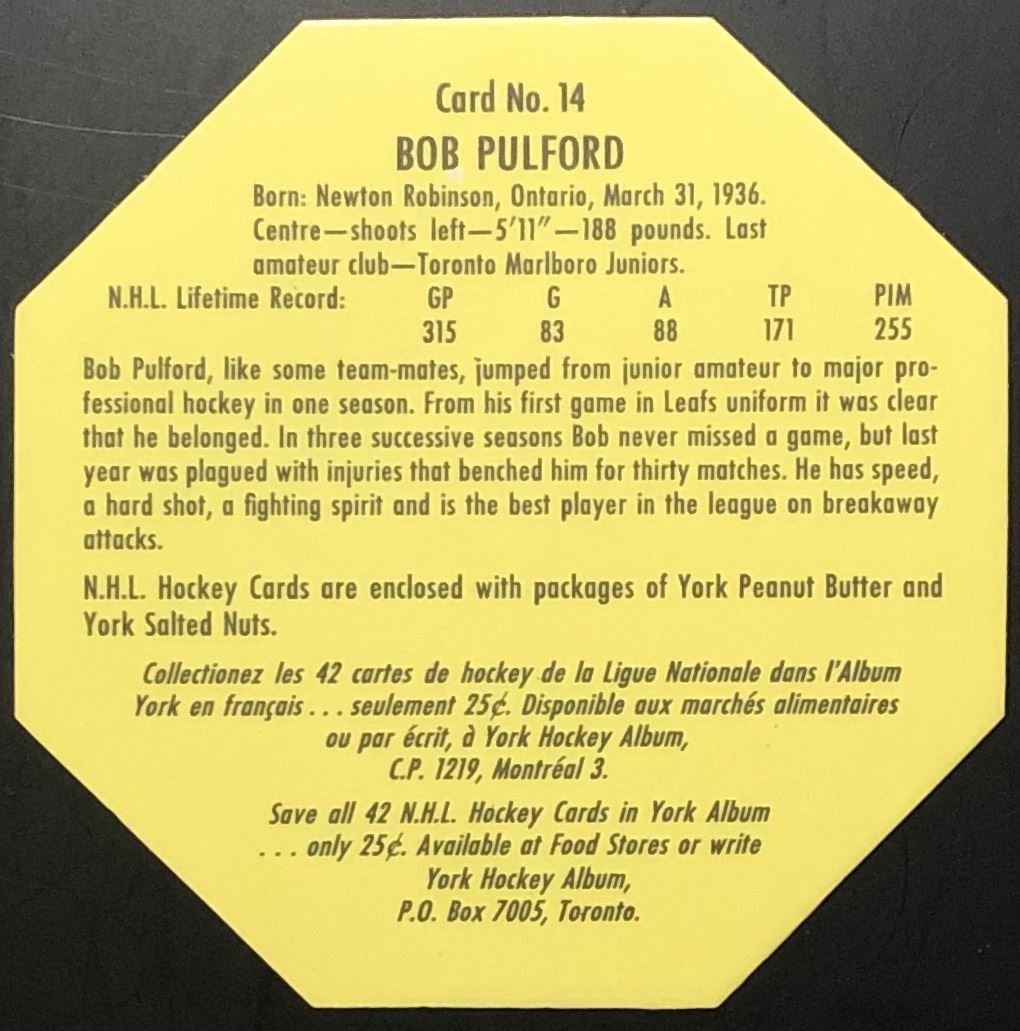 Card #14 NHL, hockey, vintage, hall of fame, regional