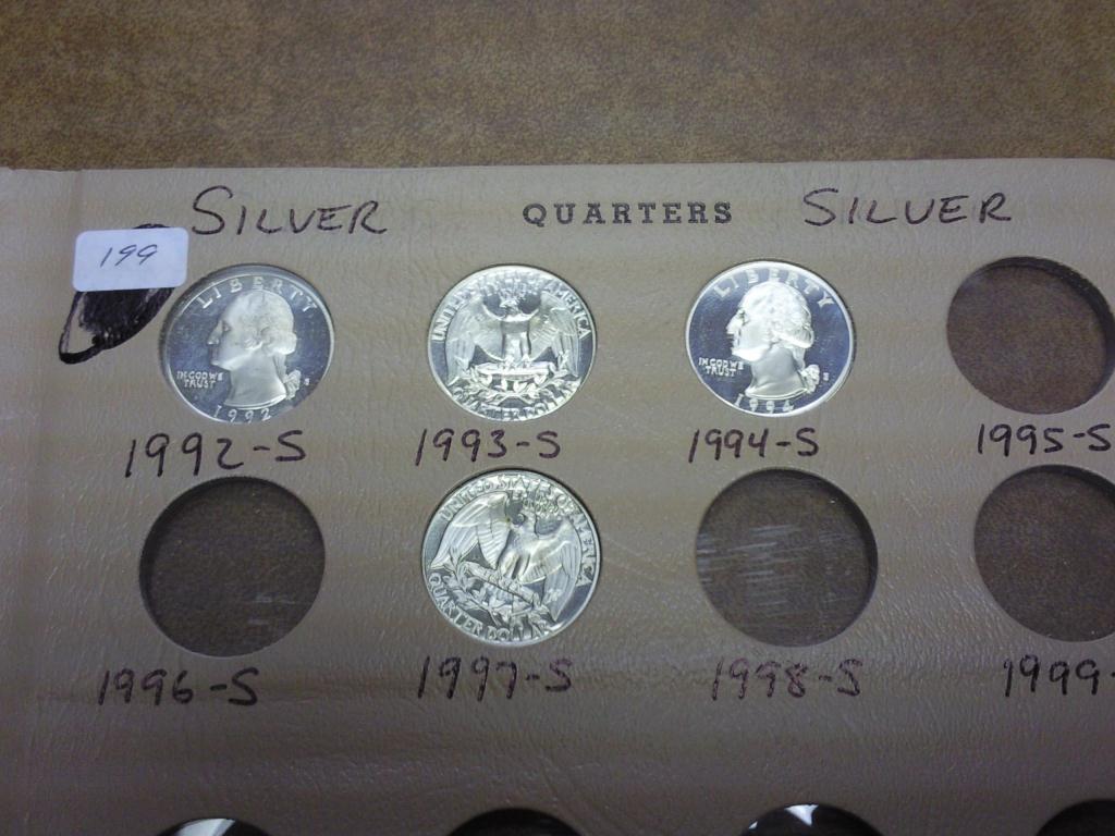 1961, 63, 92-S & 94-S SILVER WASH QUARTERS PROOF