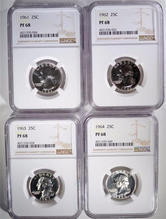 1961-64 WASHINGTON QUARTERS, NGC PF-68 ESTIMATE, $80-$100