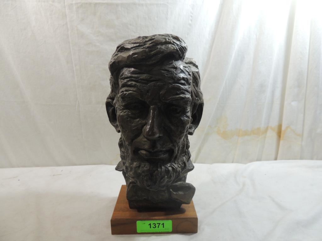 ABRAHAM LINCOLN BUST, SCULPTED HEAD, SCULPTURE, DECORATIVE BUST, LINCOLN SIGNED BUST, 1961 VINTAGE FIGURE, PRESIDENTIAL AS SHOWN SEE PHOTO FOR MORE DETAILS.