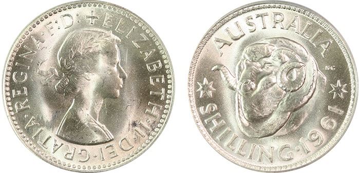 1961 Australian QEII Shilling - PCGS MS 66