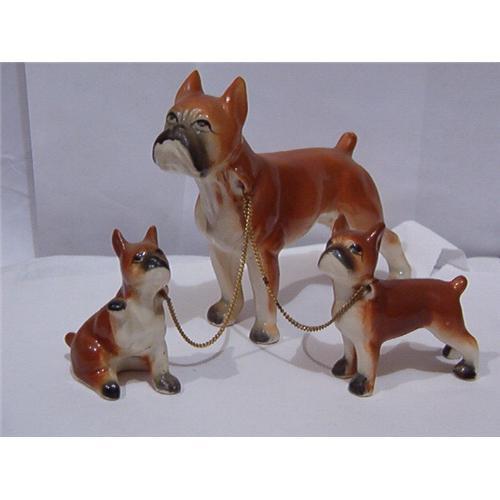 THIS IS BOXER DOG WITH 2 PUPPIES ON A CHAIN FIGURINE MADE IN JAPAN. THE DETAIL ON MOST OF MY DOGS MAKE THEM LOOK REAL. ALL OF THE DOGS THAT I PUT ON HERE ARE FROM MY OWN DOG COLLECTION. THIS DOG WAS ADDED TO MY COLLECTION ON OCTOBER 9, 1961. I HAVE OVER 300 DOGS THAT I RECEIVED FOR MY COLLECTION FROM 1954 TO 1964 THAT WILL BE PUT UP FOR SALE. I HAVE THE EXACT DATE THAT I RECEIVED EACH DOG. SOME OF THE DOGS WERE OLD WHEN I RECEIVED THEM. I NOW HAVE OVER 1200 DOGS ( OLD AND NEW ) IN MY COLLECTION AND THEY ARE ALL UP FOR SALE OR AUCTION. I GUARANTY MY DOGS ARE THE REAL DEAL. MY DOGS ARE THE OLD DOGS AND NOT FAKES AND REPLICAS. This Dog is in Excellent shape for its age. There are no chips, cracks or repairs on this Dog. You can see most of this in my pictures. I HAVE OVER 800 POSITIVE FEEDBACKS FOR MY EBAY STORE. Thanks for Looking !!!