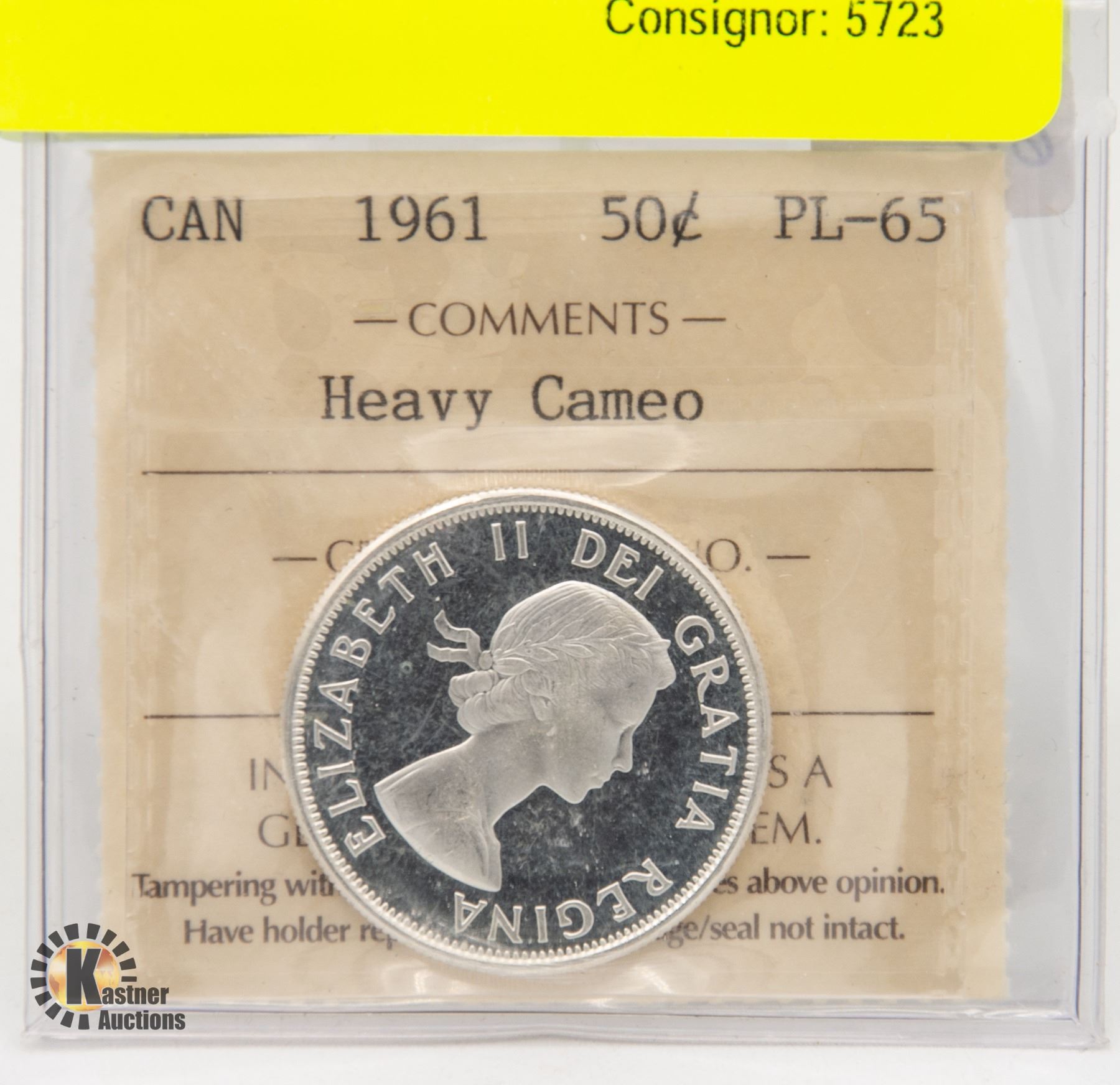 1961 CERTIFIED PL-65 CANADIAN SILVER HALF DOLLAR
