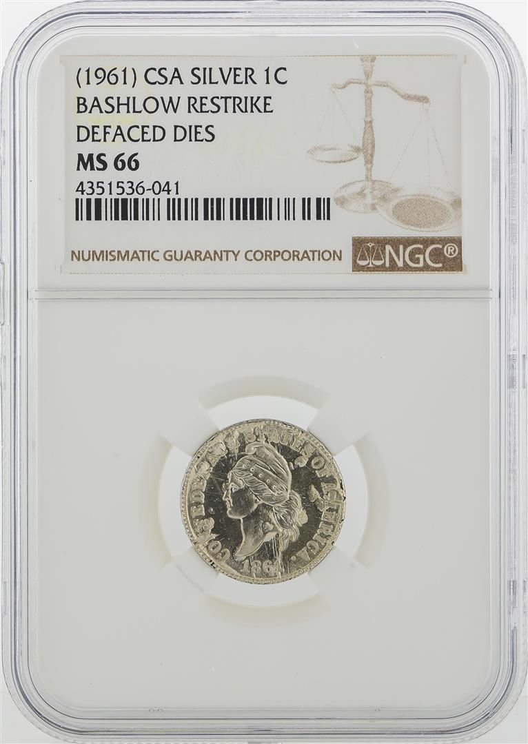 One 1961 CSA 1 Cent Silver Coin Bashlow Restrike NGC MS66. NGC Certified.