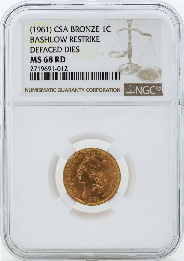 One 1961 CSA Bronze 1 Cent Bashlow Restrike Coin NGC MS68RD. NGC Certified.