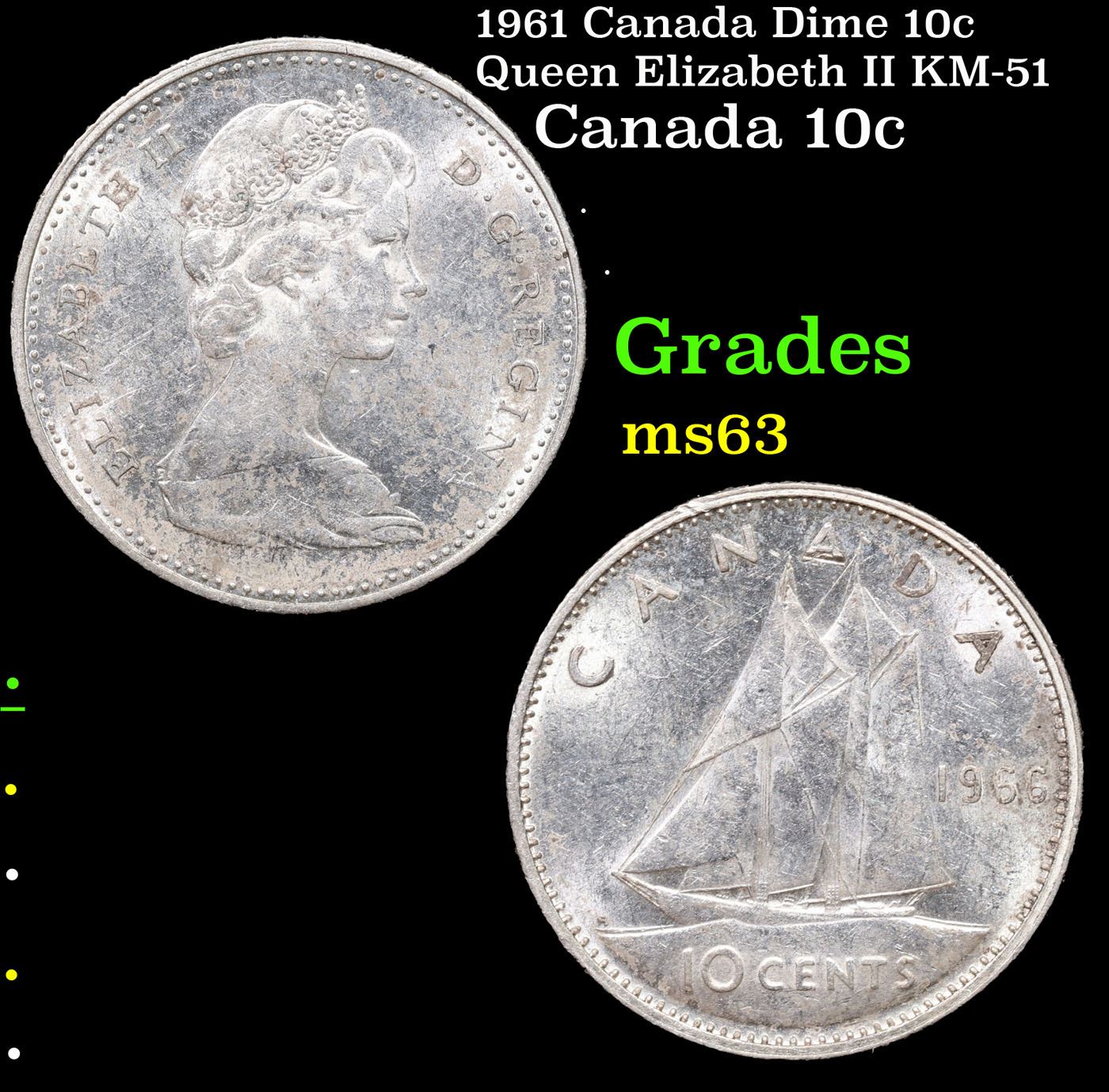 1961 Canada Dime 10c Queen Elizabeth II KM-51 Grades Select Unc.