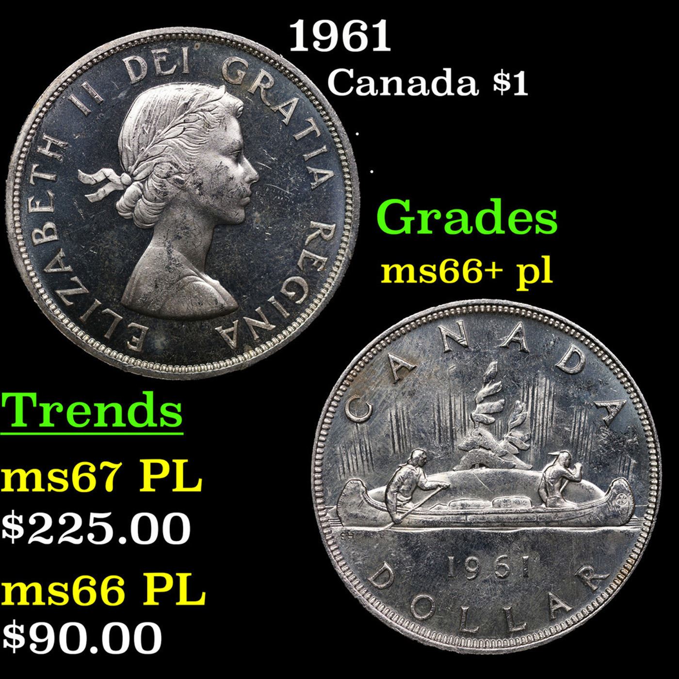 1961 Canada Dollar $1 Grades GEM++ PL.