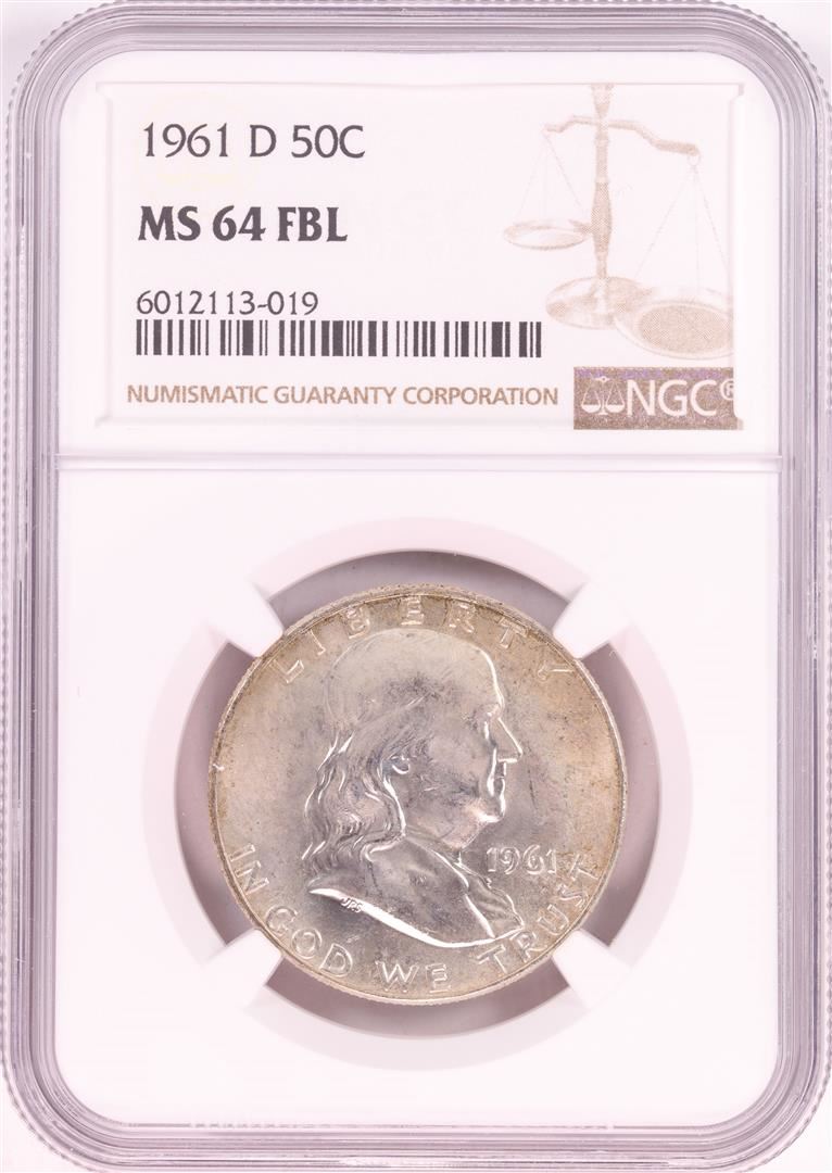 One 1961-D Franklin Half Dollar Coin NGC MS64FBL. NGC Certified.