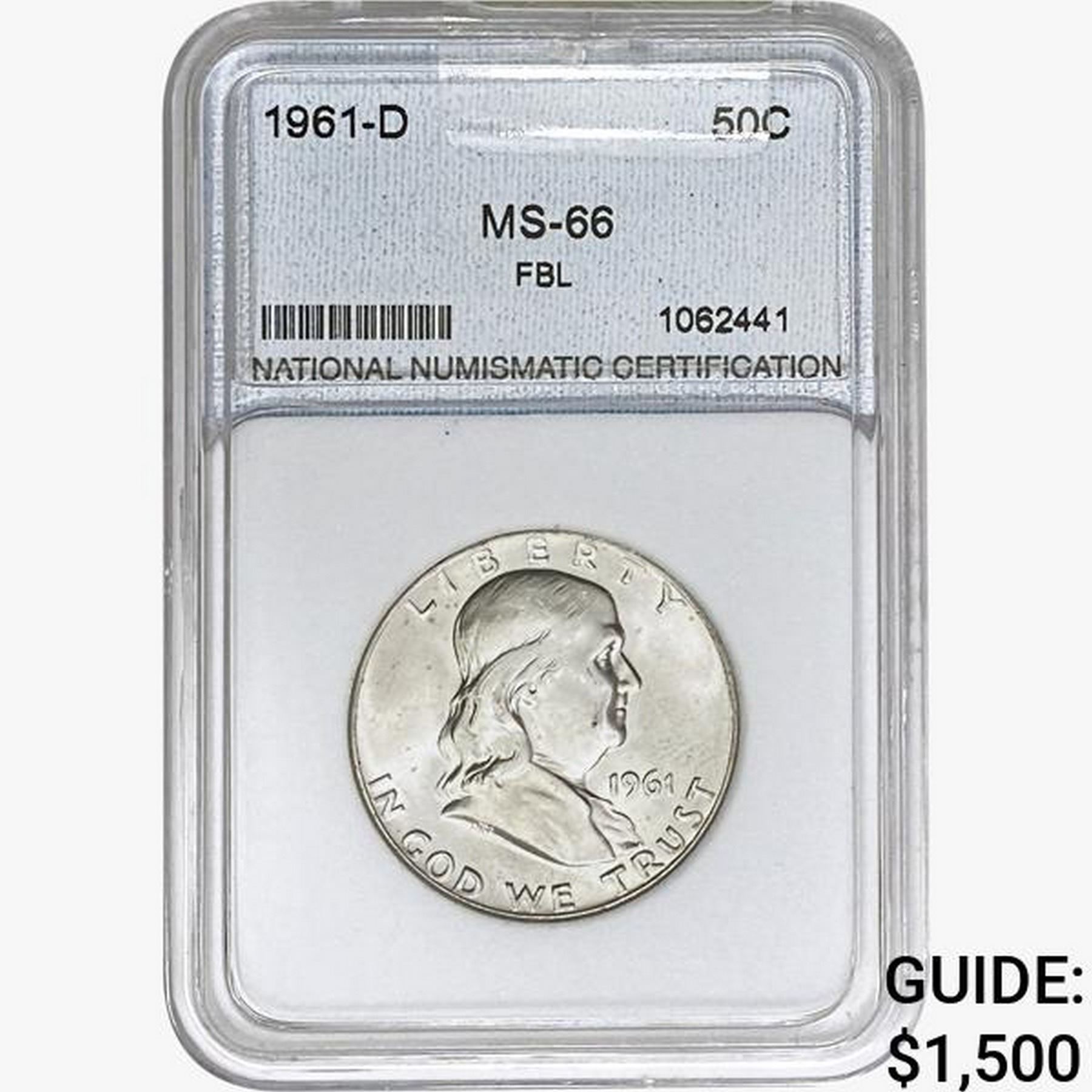 1961-D Franklin Half Dollar NNC MS66 FBL
