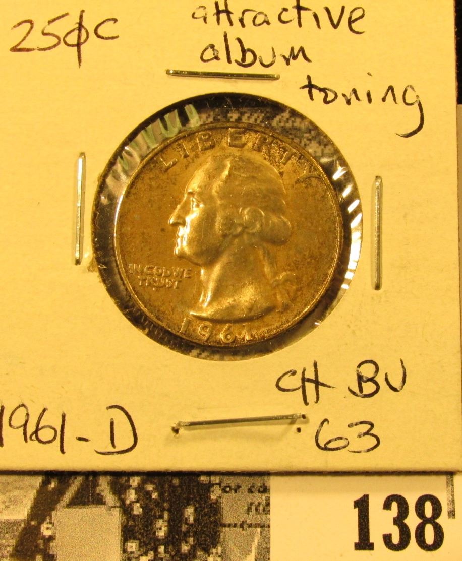 1961 D Silver Washington Quarter, Gem BU 63 with attractive album toning.
