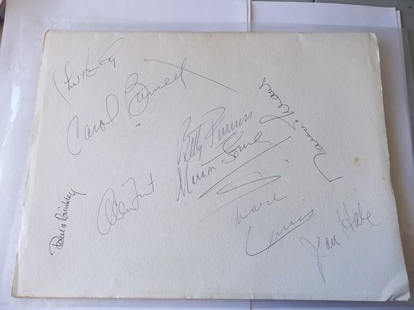 1961 Emmy Awards program signed on the back by Carol Burnett, Allan Funt of Candid Camera, Marion Lorne and Maurice Evans who played Aunt Clara and Samantha's father on Bewitched, Shari Lewis, Jean Hale, newsman David Brinkley, and several others.