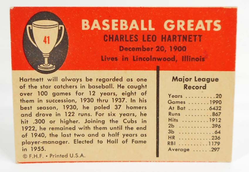 1961 FLEER GABBY HARTNETT #41 BASEBALL CARD