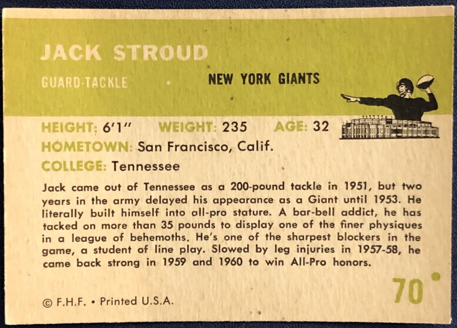Card #70 NFL, football, vintage