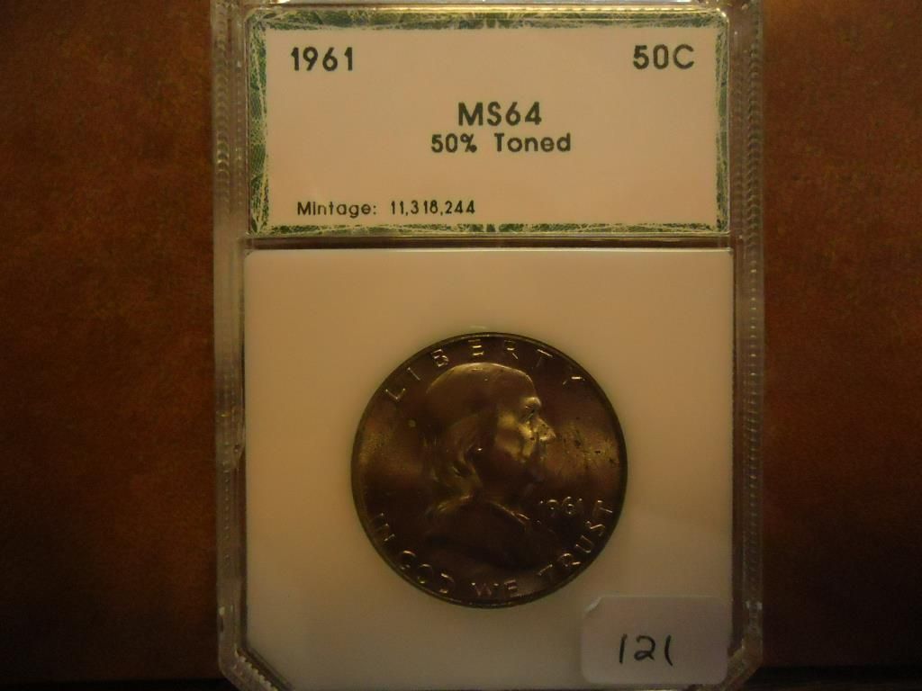 1961 FRANKLIN HALF DOLLAR PCI MS64 50% TONED