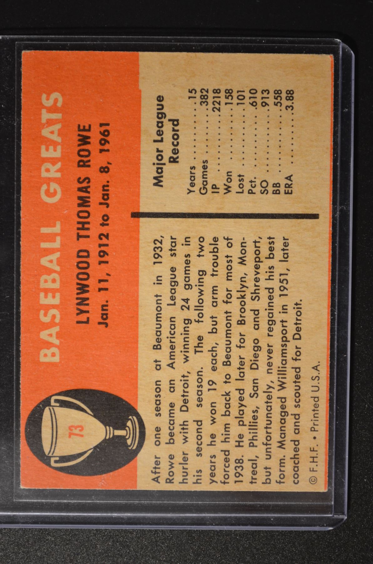 1961 Fleer #73 Schoolboy Rowe