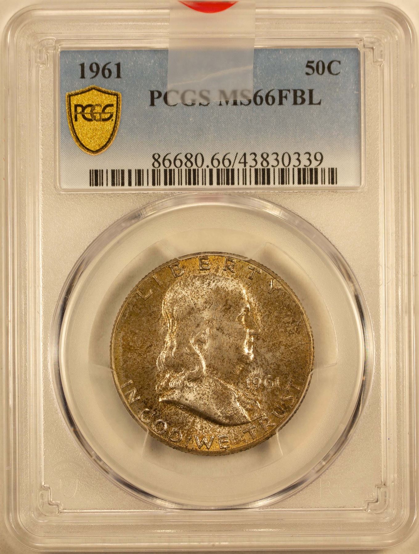 1961 Franklin Half Dollar 50c PCGS MS-66 FBL (Toned)
