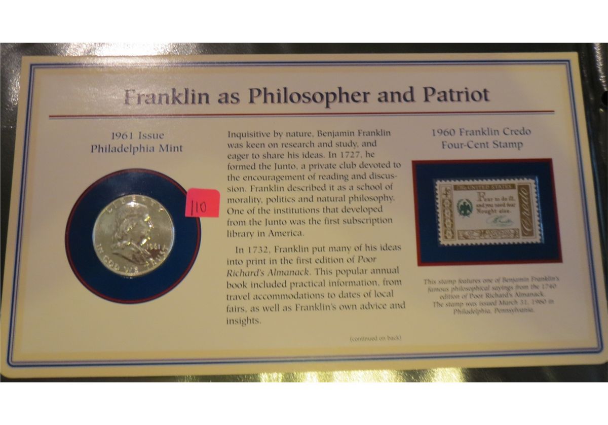 1961 Franklin Half Dollar - Proof with 4 Cent Franklin Credo Stamp