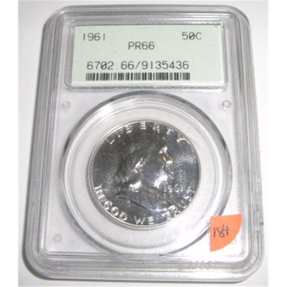 1961 Franklin Silver Half Dollar *EXTREMELY RARE CERTIFIED by PCGS PR-66*!! Serial # 6702.66/9135436. ***Coin & Currency Grades and Values are not Northern Colorado Estate Liquidators Responsibilty. Grade and Values are determined by Consigner(s) & Buyers ONLY***