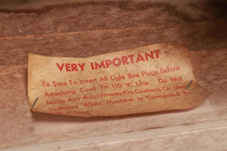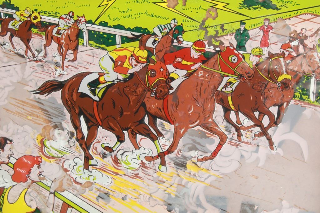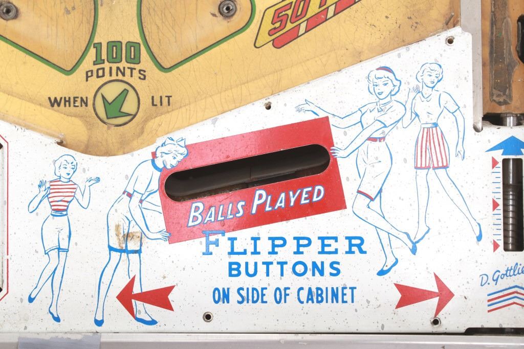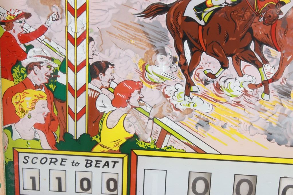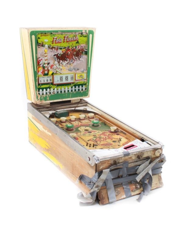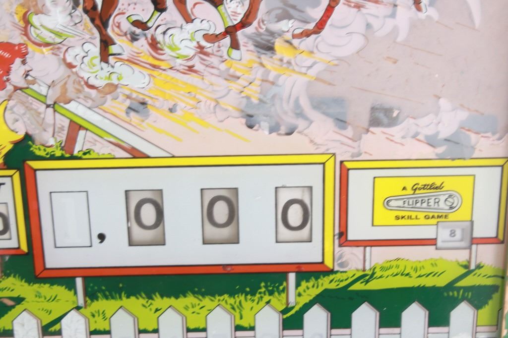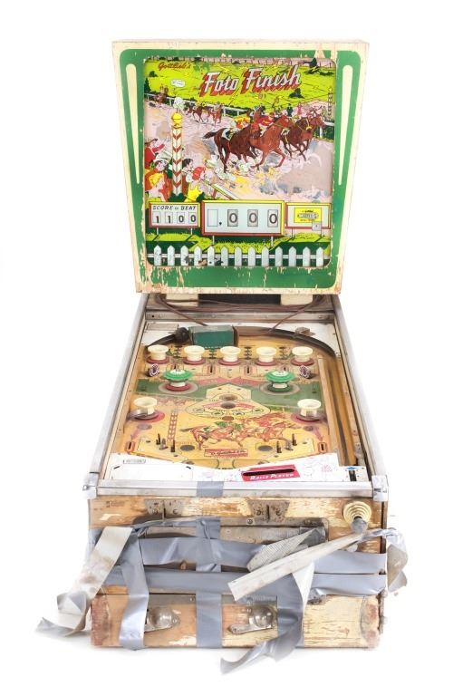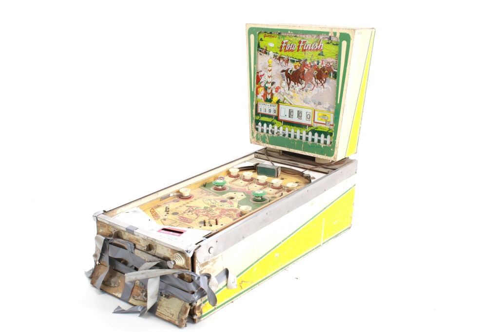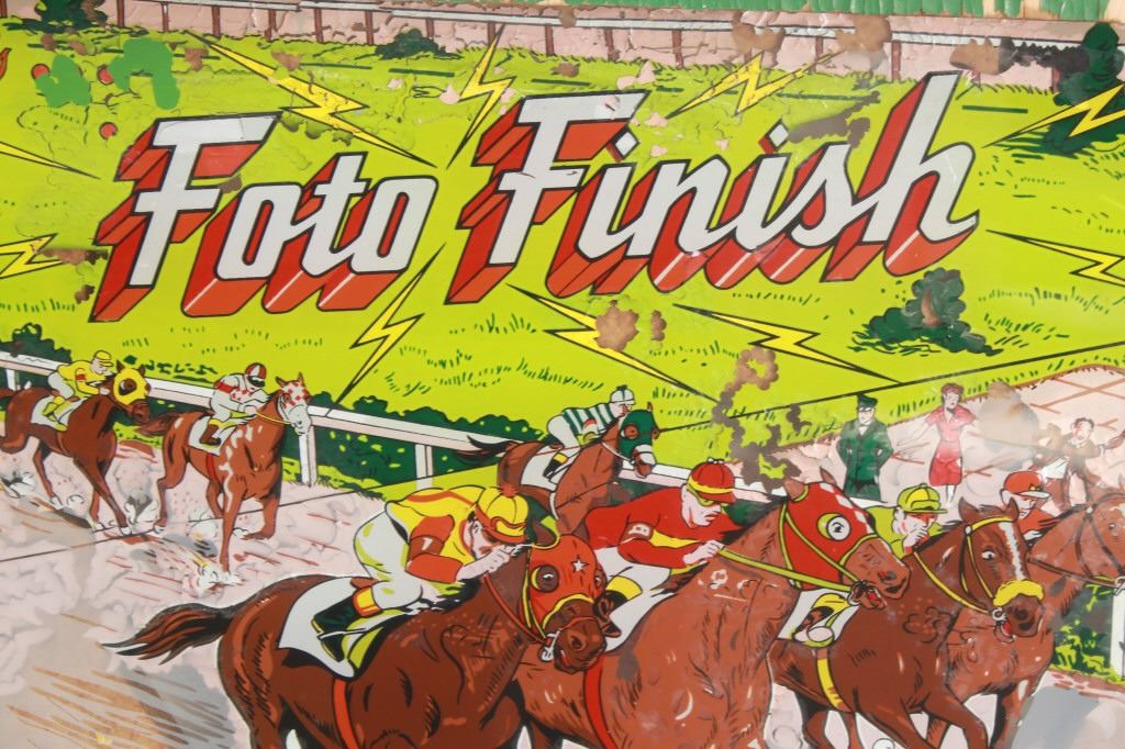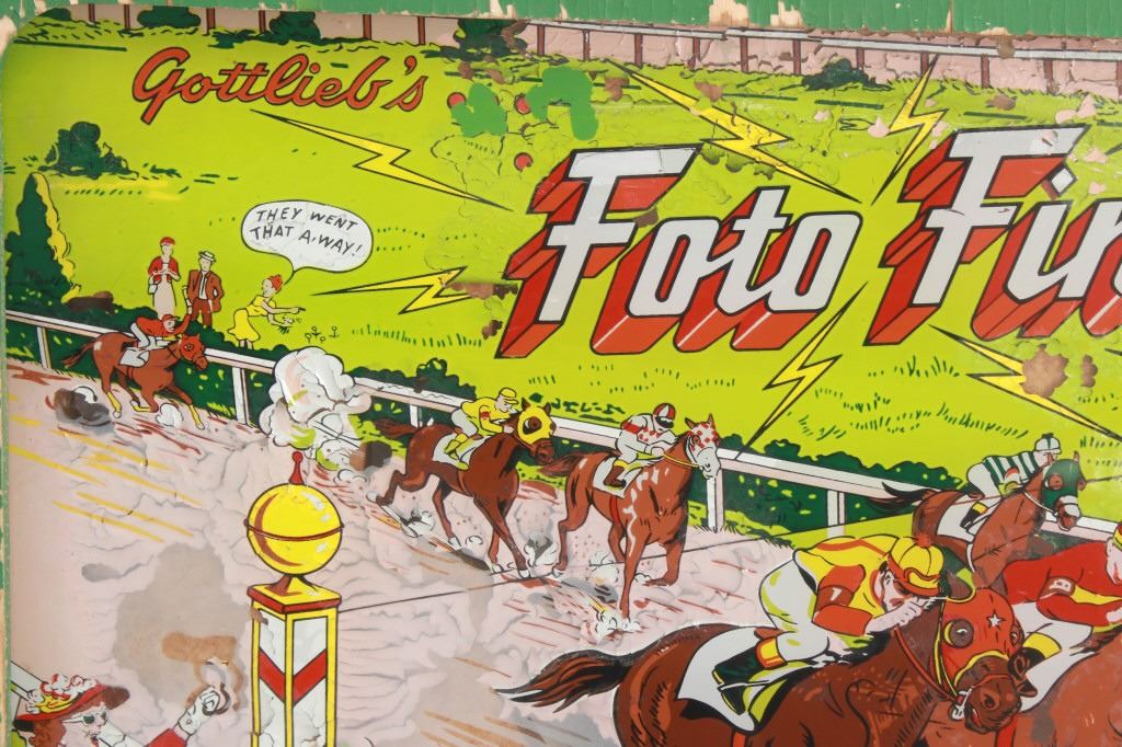 For your consideration is this 1961 pinball machine titled, "Foto Finish" designed by Wayne Neyens and manufactured by D. Gottlieb & Company. David Gottlieb, a Chicago-born businessman and inventor, established D. Gottlieb & Co. in 1927. During the pinball machine and other arcade game heyday of the 1940s and 1950s, the company was one of the industry's top producers. Pinball machines made by D. Gottlieb & Co. were renowned for being innovative, high-quality, and frequently embellished with vibrant, intricate artwork and designs. D. Gottlieb & Co. produced pinball machines in addition to other arcade games like mechanical baseball, shooting, and fortune tellers. The business was a pioneer in the development of the electro-mechanical pinball machine, which combined mechanical and electronic elements to replace earlier, purely mechanical designs. Until the 1970s, when the popularity of video games and other forms of electronic entertainment started to surpass that of pinball and other arcade games, D. Gottlieb & Co. remained a significant player in the arcade gaming industry. The company was eventually sold to Columbia Pictures in 1977, and after that, the Premier Technology Group bought its assets. Until the late 1990s, this company produced pinball machines under the Gottlieb brand. The "Foto Finish" pinball machine's cabinet was cartoon-illustrated with cartoon depictions of photographers, cameras, and other photographic tools. The backglass artwork showed several photographers in the foreground taking pictures of the horses as they passed in front of a crowd of spectators at a horse race. The "Foto Finish" pinball machine's playfield was created to resemble a derby track with a race in progress. At the top of the playing field are four horse names that can be lit up individually to earn bonus points. The playfield included a number of lanes and bumpers as well, all of which were intended to keep the ball in play and the player interested.