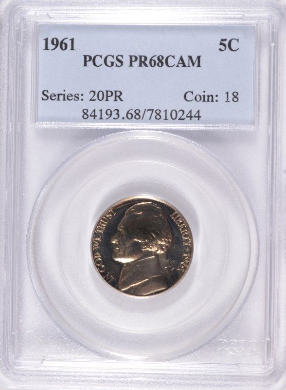 1961 JEFFERSON NICKEL, PCGS PROOF-68 CAMEO! NICE!!