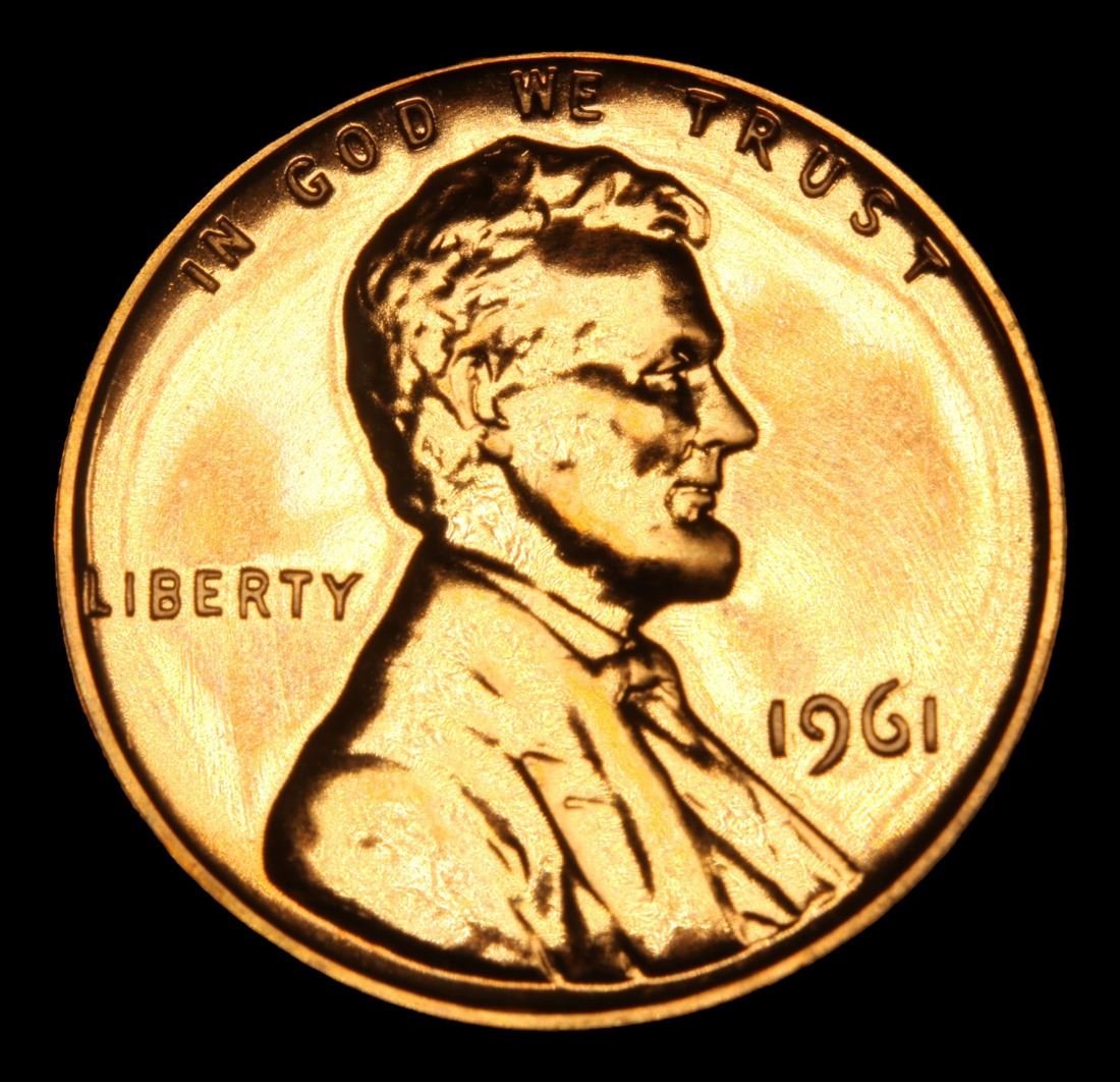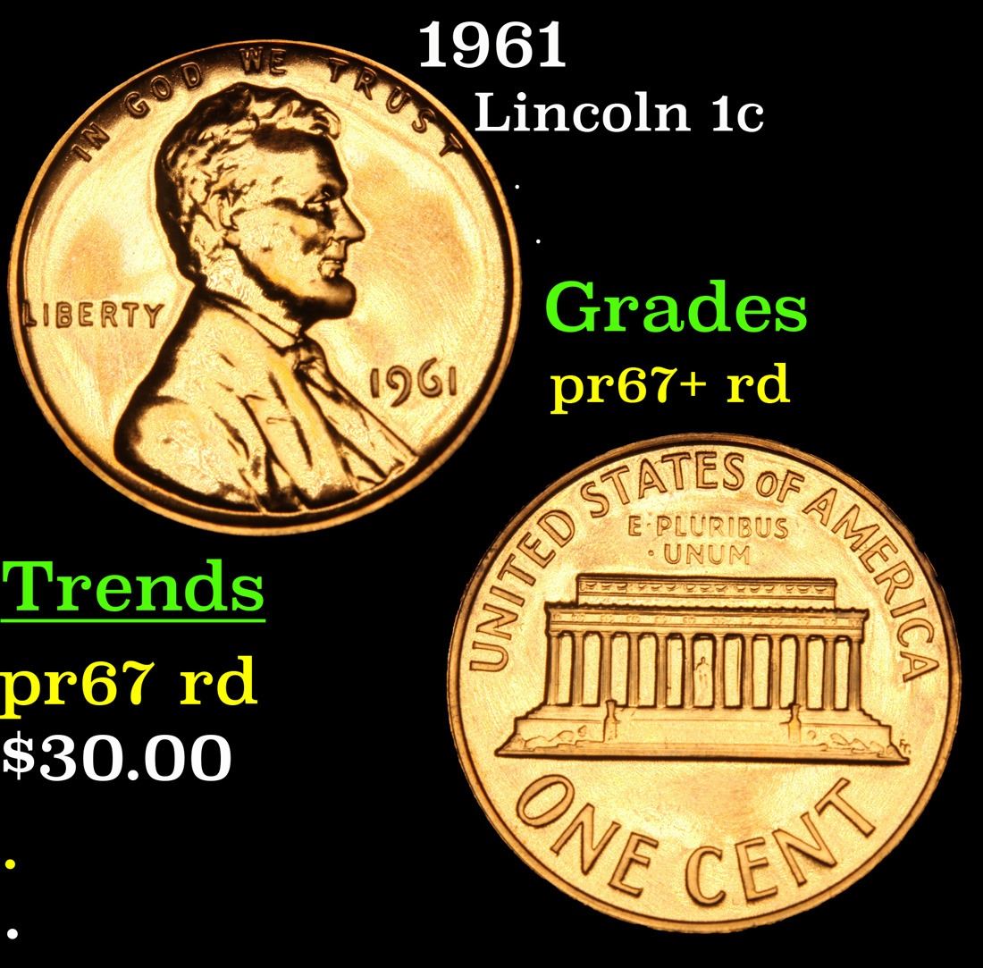 1961 . . Lincoln Cent 1c Grades Gem++ Proof Red.