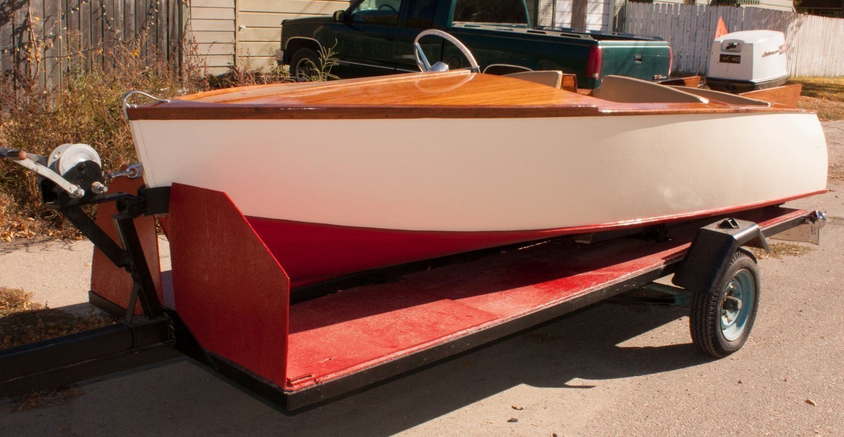 It ain't fiberglass, it's a 1961 model Lane wood barrel back kit boat. Fiberglass cloth and resin gel coat over marine grade plywood. All white oak frame. From the original family that built it.