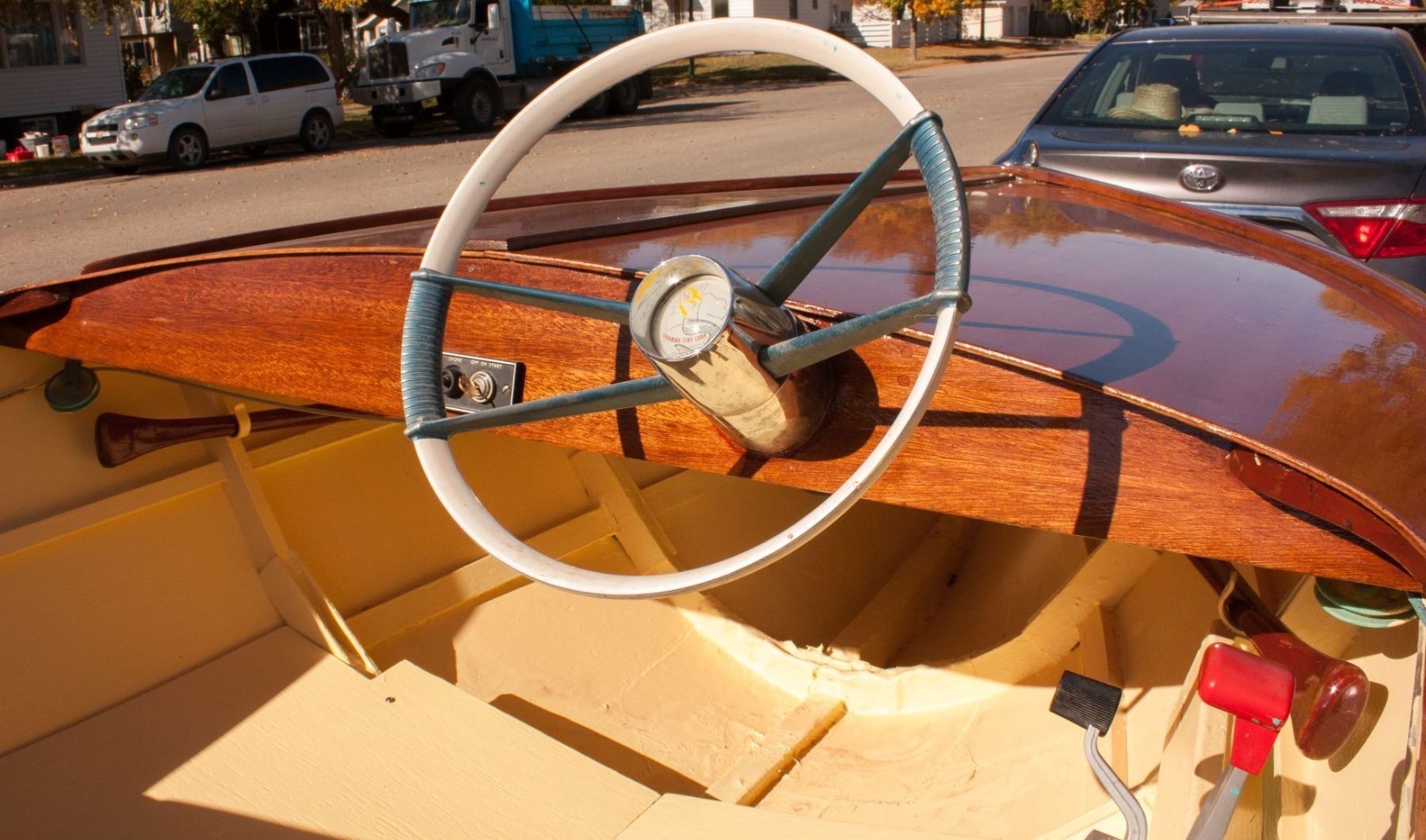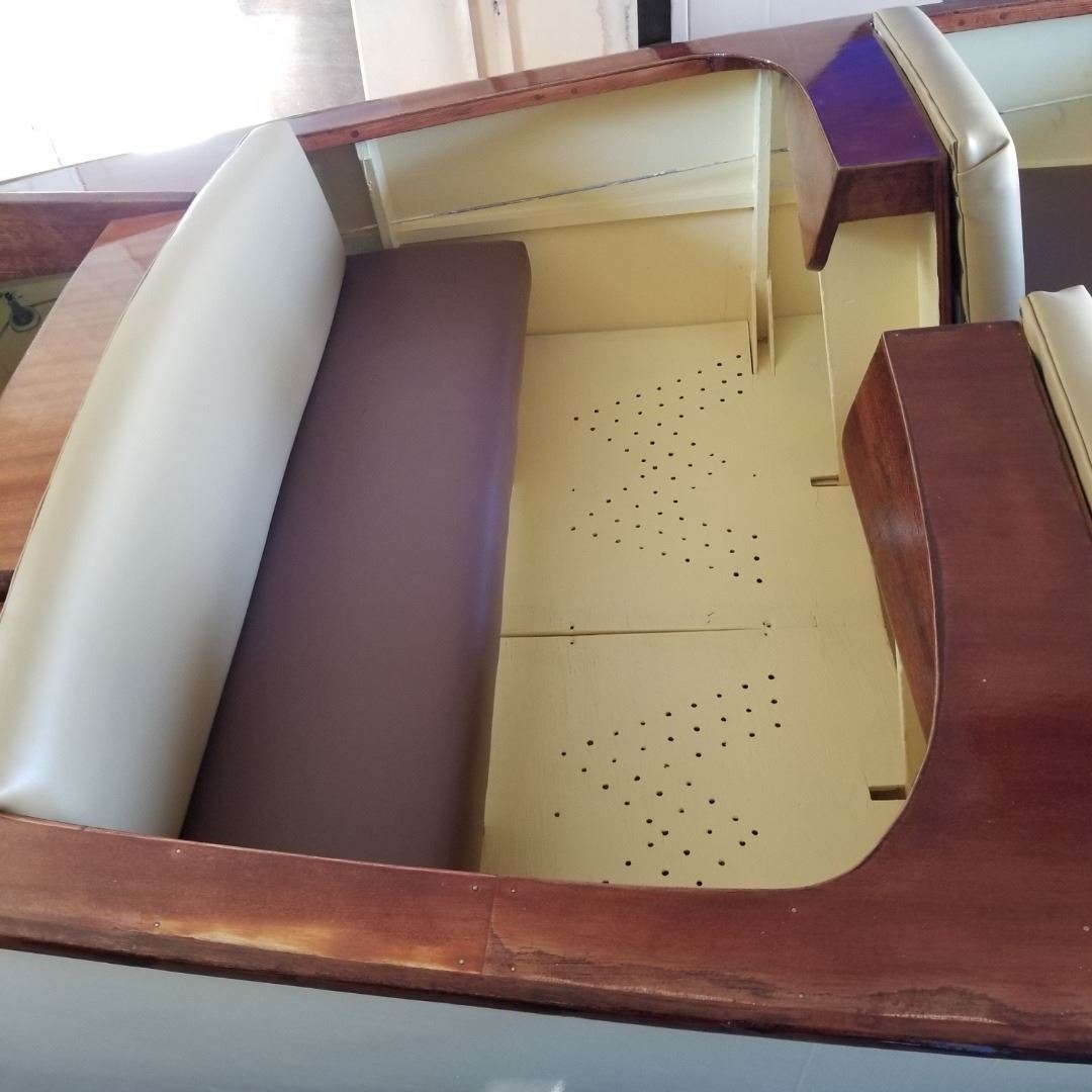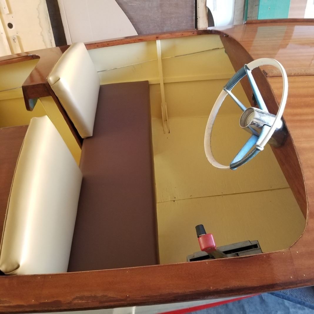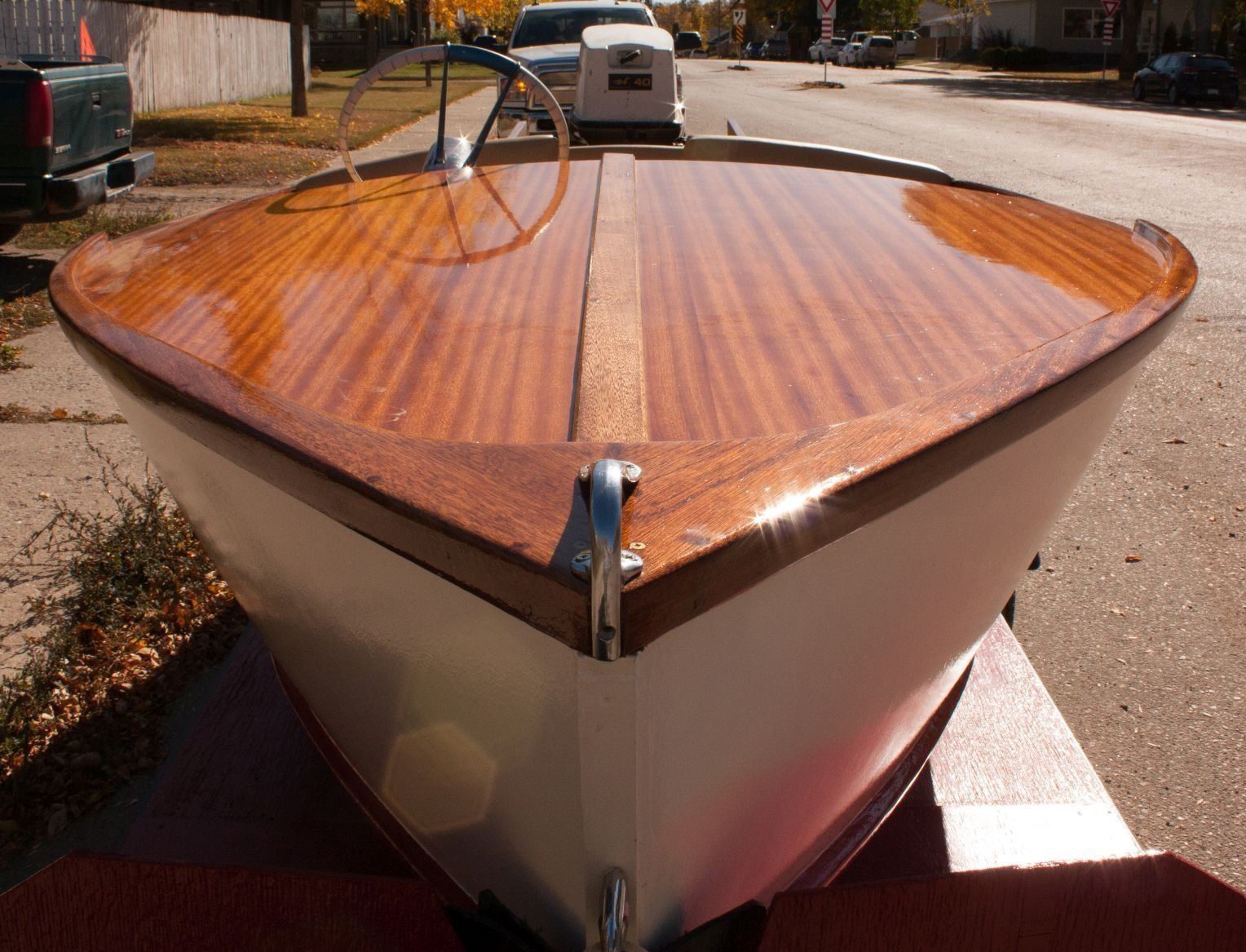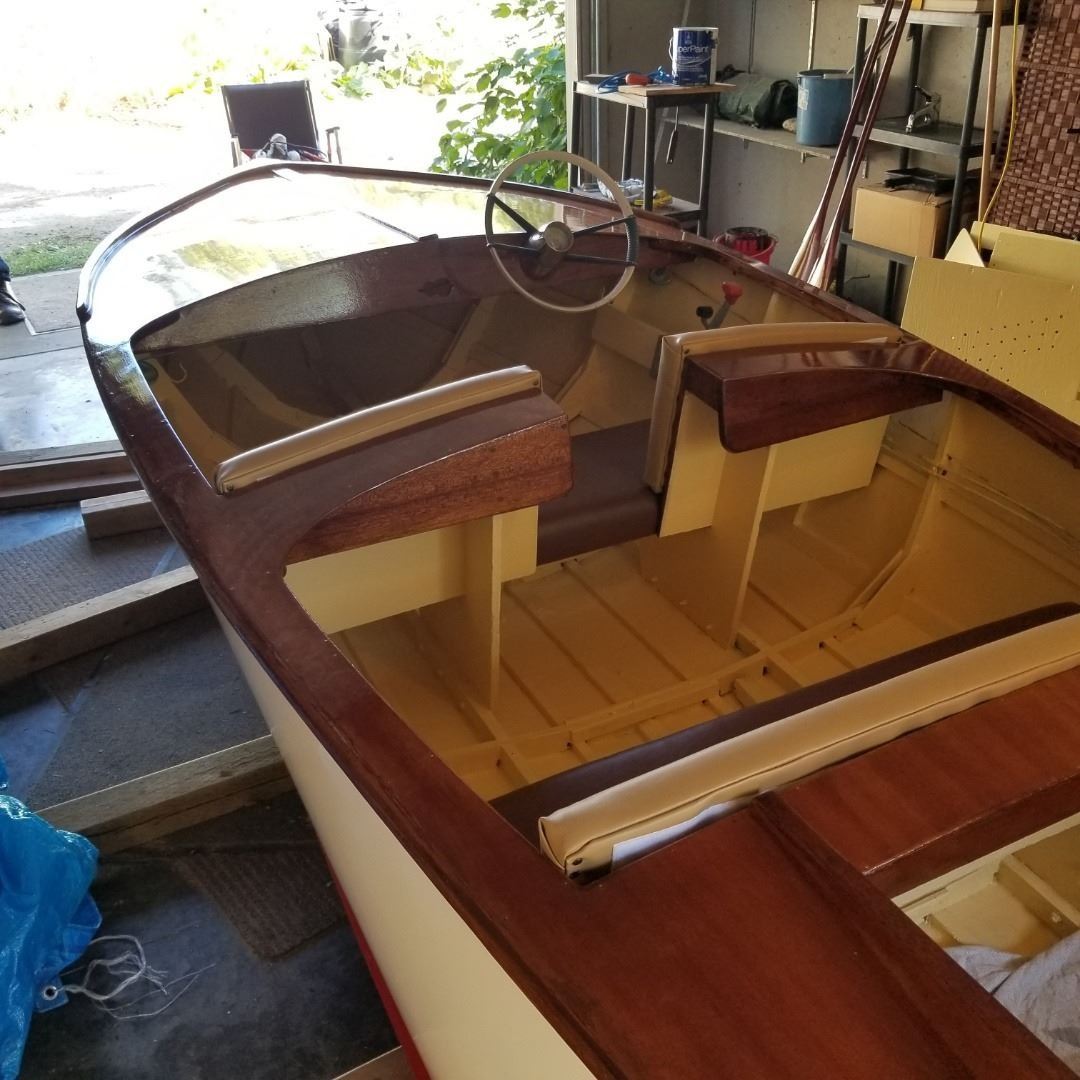 This boat has been totally restored which includes fiberglass interior reinforcement at the keel to rib connections, fiberglass added at the interior front hull for water resistance and added strength. A new custom ribbon mahogany deck was installed The original windshield goes with the boat but has not been reinstalled in the event the new owner wants a new windshield for example straight plexiglass or tempered glass versus the present factory framed 1/4 inch curved plexiglass windshield.