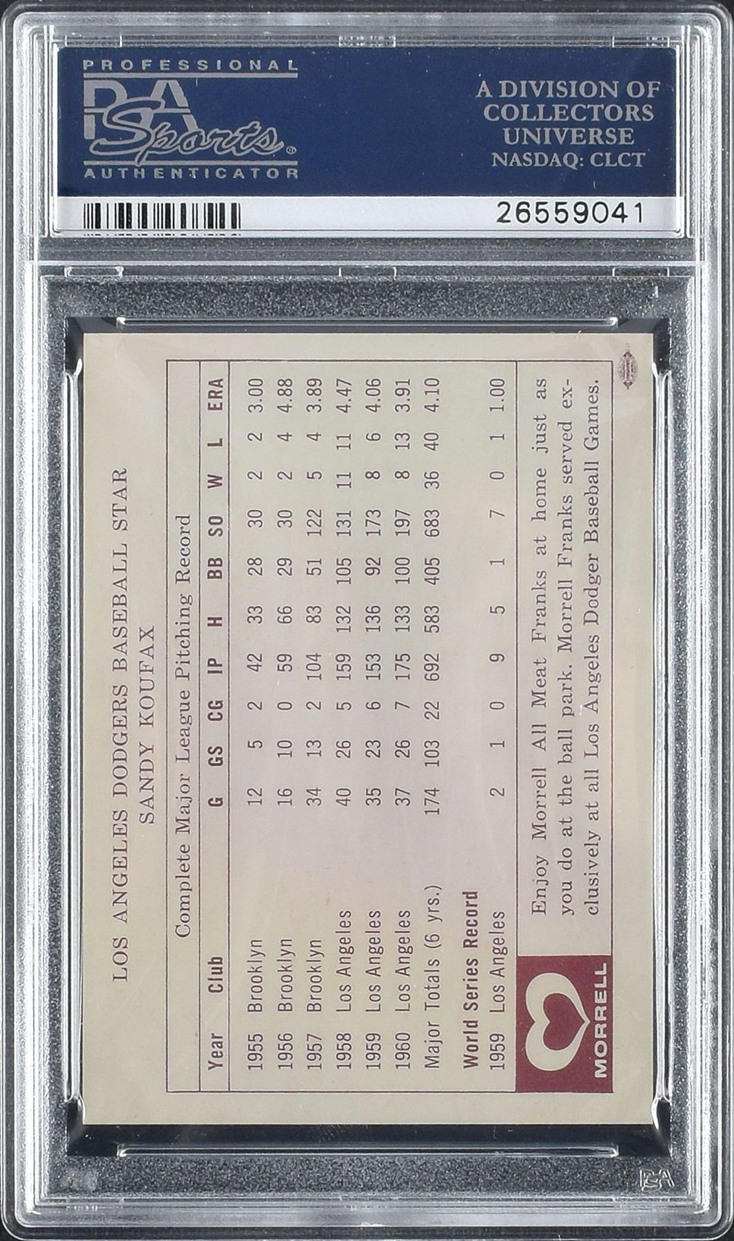 Graded by PSA MINT 9. Morrell Meats produced baseball cards for three years (1959-1961) to honor the recently transplanted Los Dodgers baseball team, which moved from Brooklyn after the 1957 season.