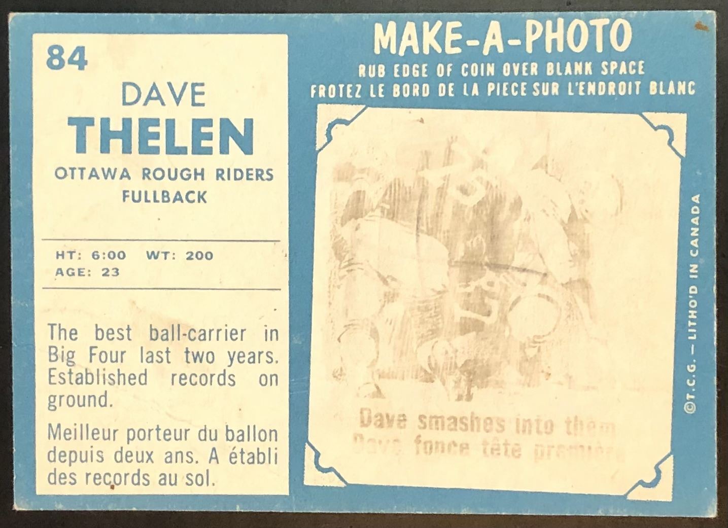 Card #84, crease vintage, CFL, football, OPC, hall of fame, rookie