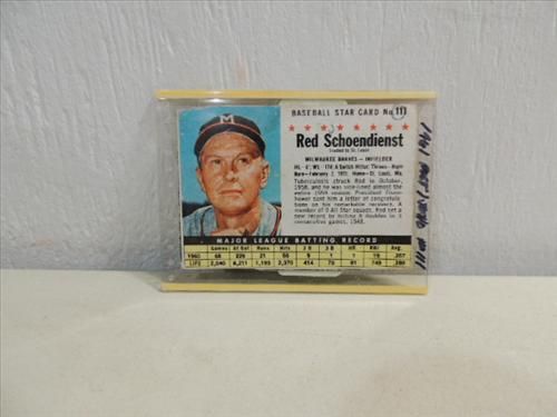 1961 POST CEREAL #111 BASEBALL CARD RED SCHOENDIEST. AS SHOWN. VIEW PICTURE FOR DETAIL.