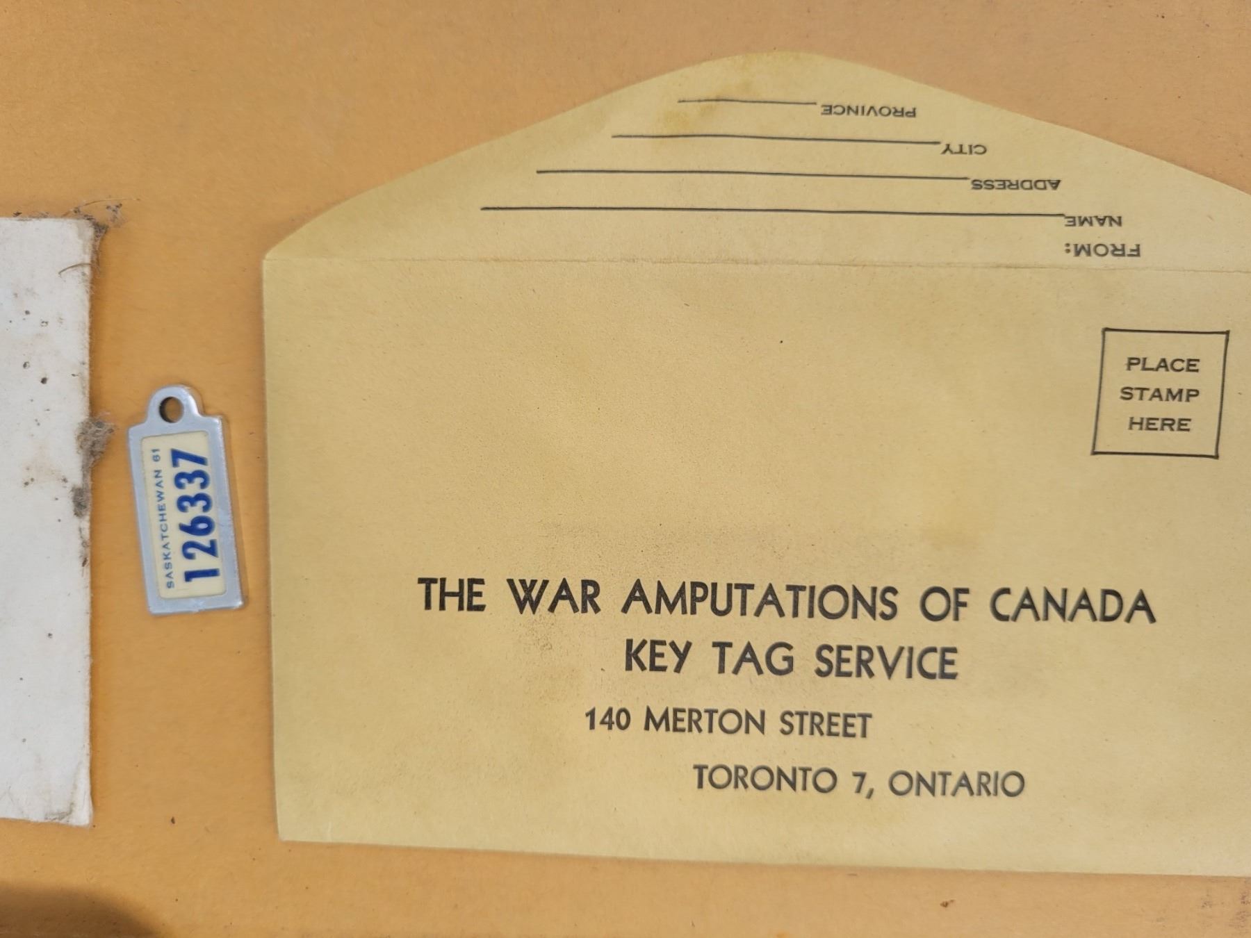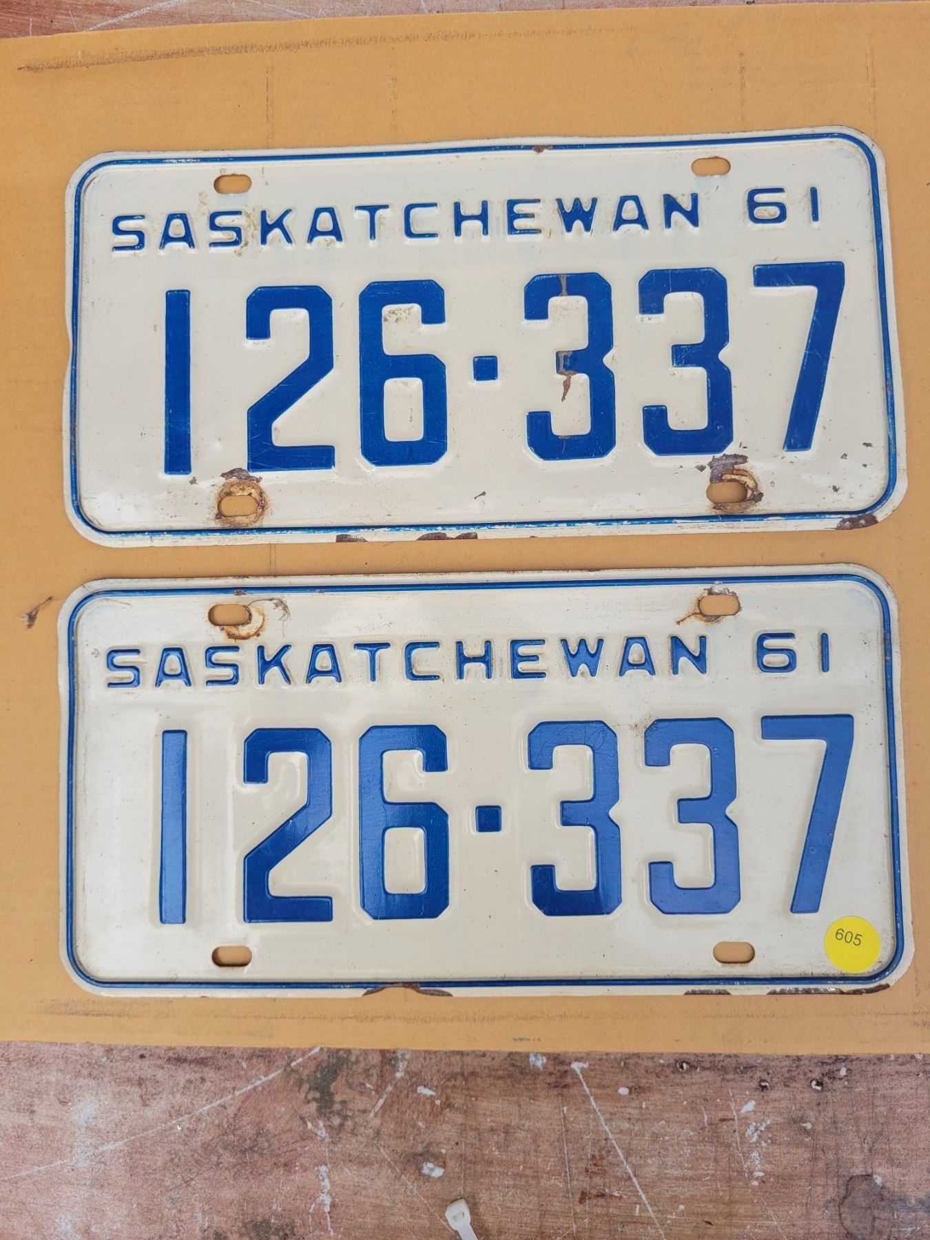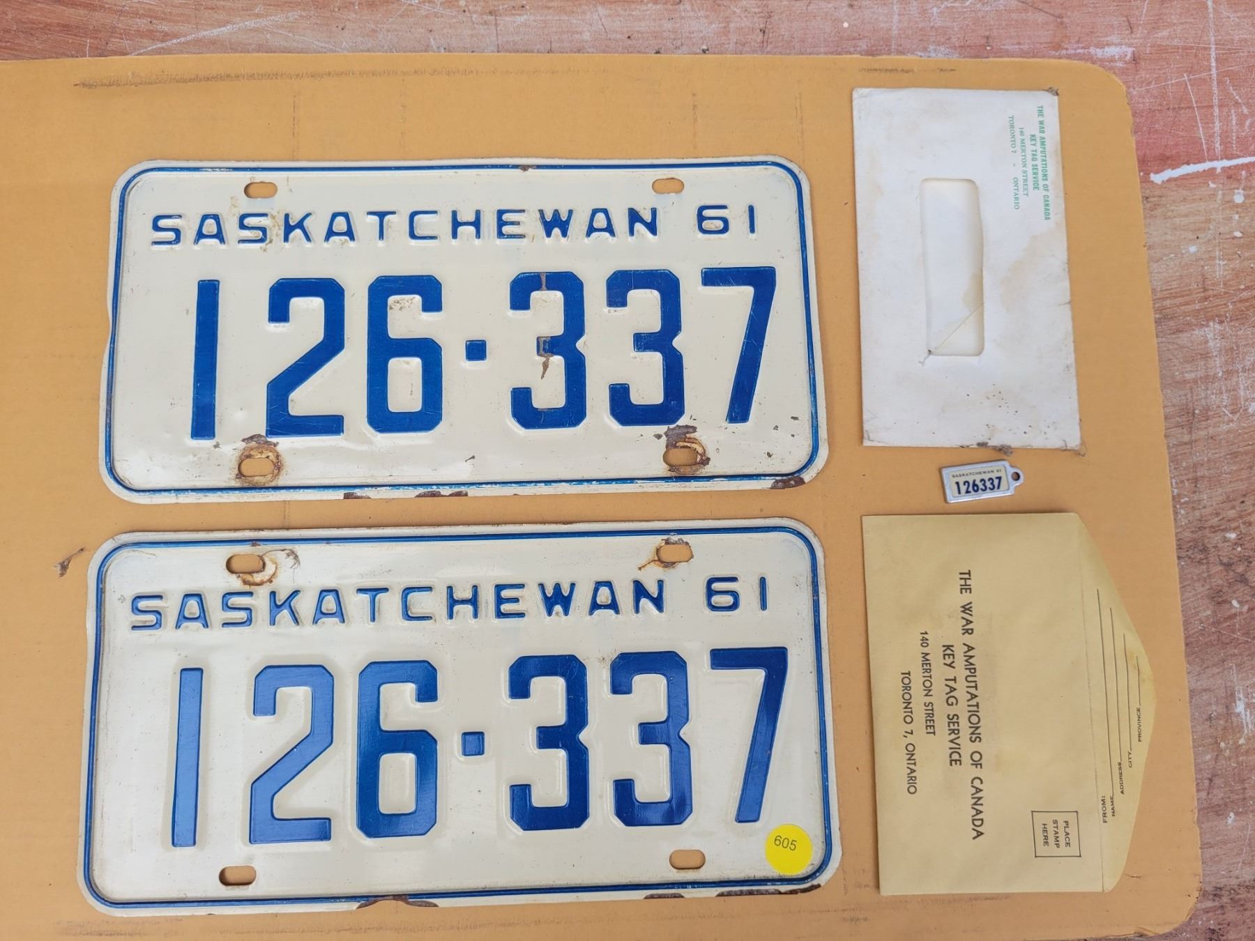1961 Pair of Saskatchewan license plates plus matching War Amp key tag