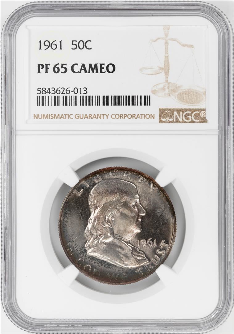 One 1961 Proof Franklin Half Dollar Coin NGC PF65 Cameo. NGC Certified.