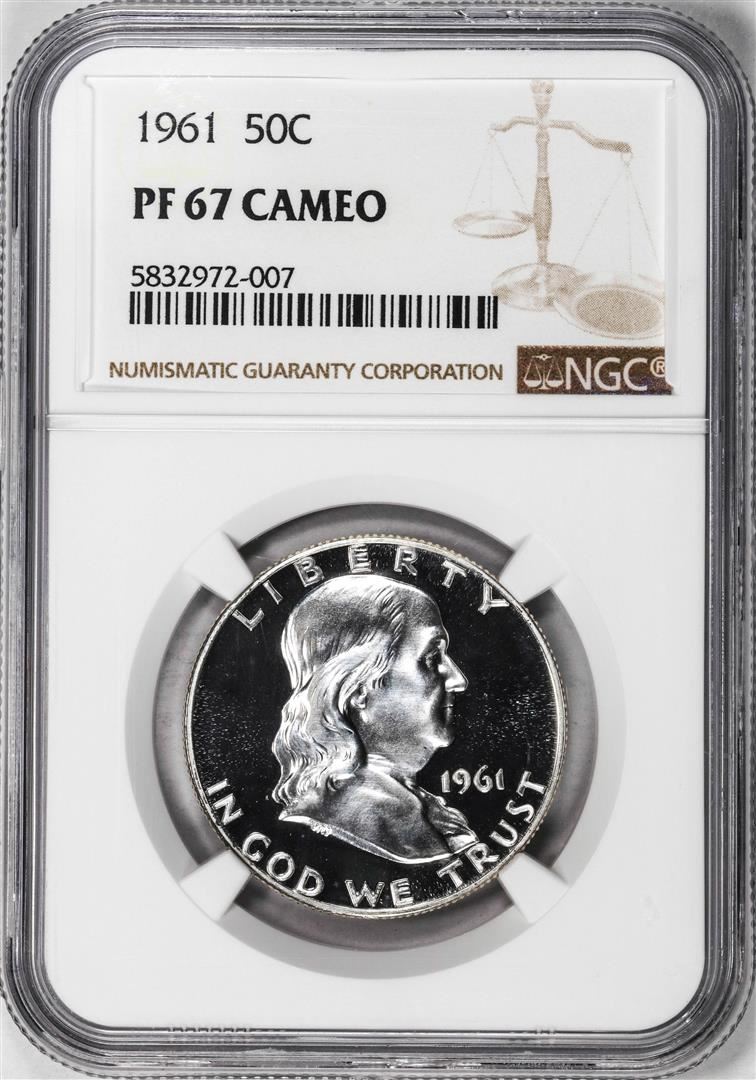 One 1961 Proof Franklin Half Dollar Coin NGC PF67 Cameo. NGC Certified.