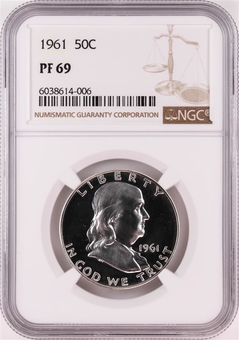 One 1961 Proof Franklin Half Dollar Coin NGC PF69. NGC Certified.